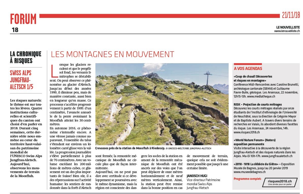 La chronique à risques 2/5, par Janosch Hugi. Vice-directeur Patrimoine mondial Swiss Alps Jungfrau-Aletsch